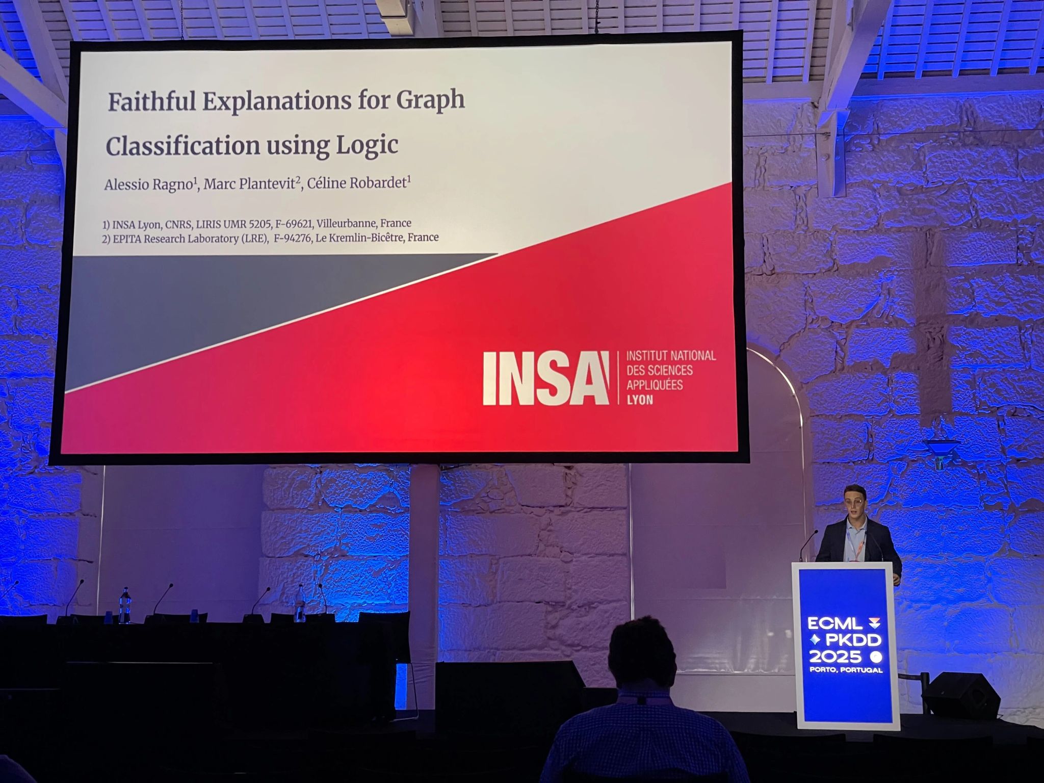 Today I had the pleasure of presenting our paper “Faithful Explanations for Graph Classification using Logic” at ECML PKDD 2025, in collaboration with Marc Plantevit and Céline Robardet.